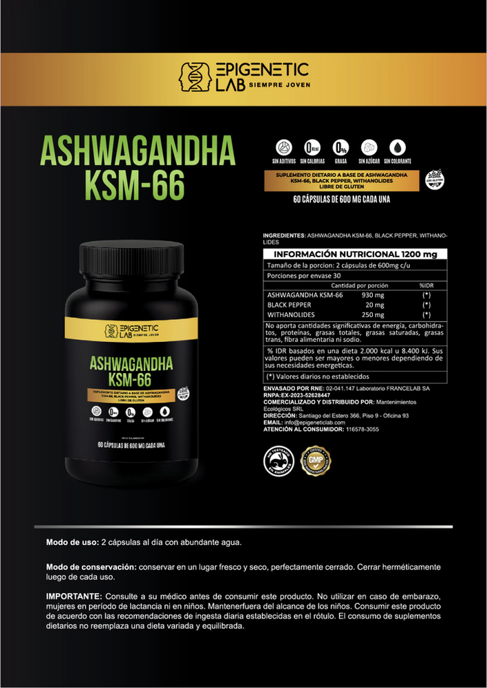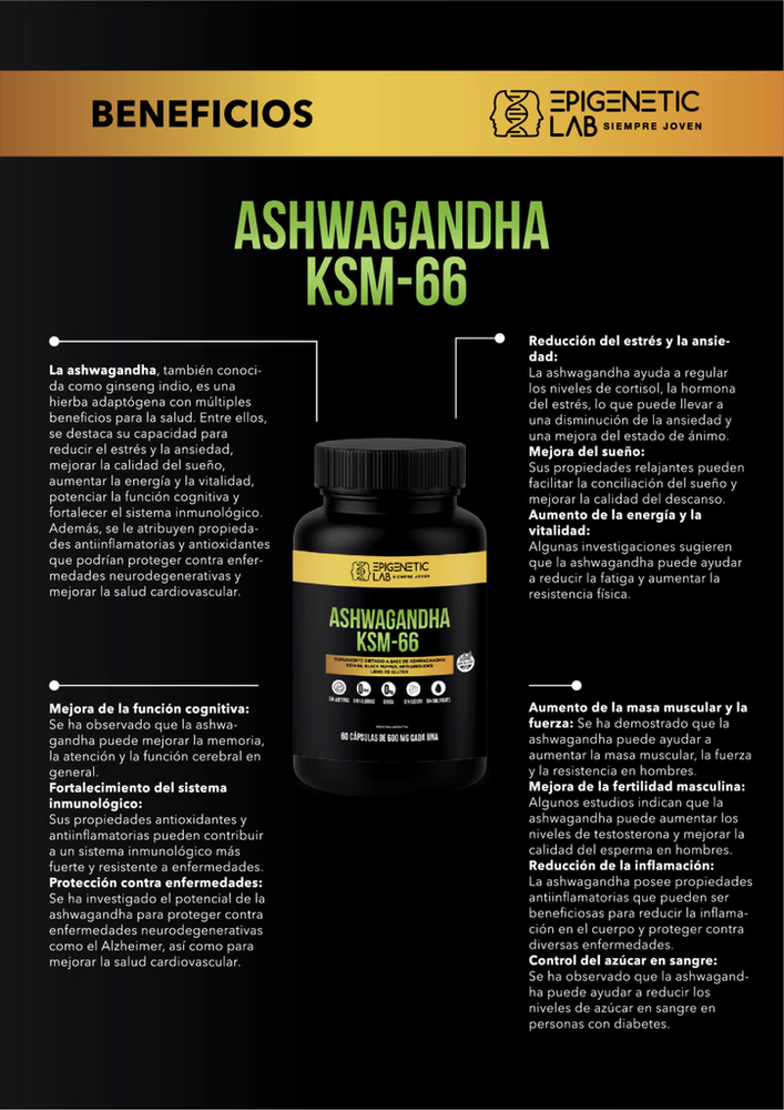 Regulación del Cortisol: KSM-66 es ampliamente reconocida por su capacidad para ayudar a regular los niveles de cortisol, la "hormona del estrés". Al reducir el cortisol, contribuye a disminuir la ansiedad, la tensión y mejorar el estado de ánimo.
