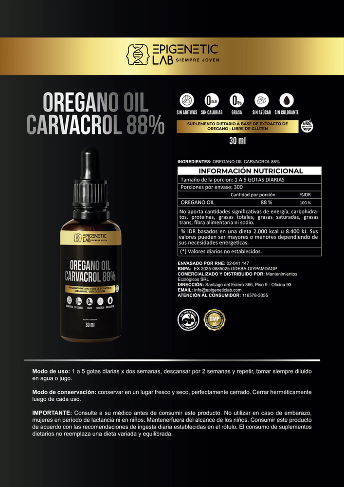 ACEITE DE OREGANO X 30 ML 88% CARVACROL ORGANICO